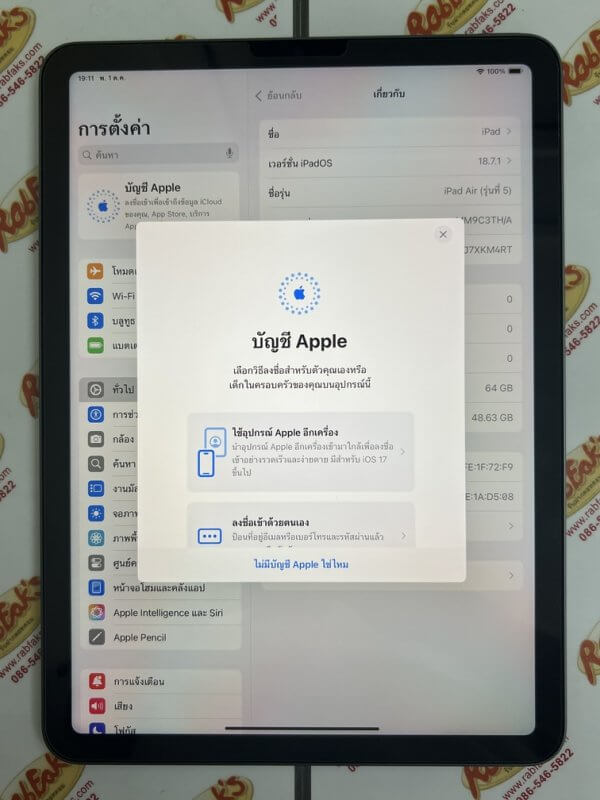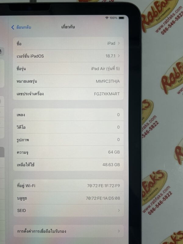 ขายถูกๆ iPad Air 5 WiFi 64GB สภาพสวย93% สุขภาพแบต79% สีSpace gray ศูนย์ไทย อุปกรณ์ครบกล่อง ตัวเครื่อง+หัว+สาย+คู่มือ+กล่อง ไม่ติดiCloud ประกันหมดแล้ว