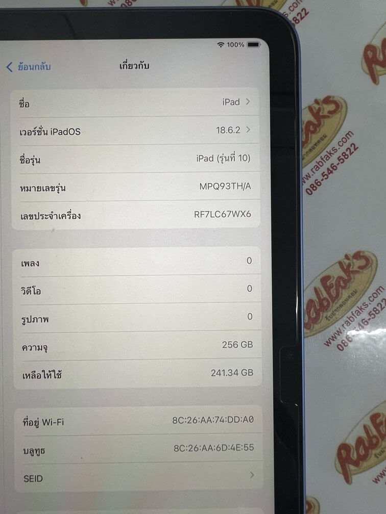 ประกาศขายแท็บเลตจากค่ายดังของ Apple เป็นรุ่น iPad Gen 10 WiFi (ใส่ซิมไม่ได้) หน่วยความจำตัวเครื่อง256GB(ความจำเยอะ) จอใหญ่10.9นิ้ว สภาพสวย92% มีรอยขนแมวนิดหน่อยมองแทบไม่เห็นโดยรวมแล้วสวย สุขภาพแบต87% สีBlue เครื่องศูนย์ไทย อุปกรณ์ไม่มีนะครับ มีแต่ตัวเครื่อง ติดฟิล์มหน้าจอให้แล้วครับ resetเครื่องให้ใหม่แล้วพร้อมใช้งานได้ทันที ไม่ติดiCloud ประกันหมดแล้วแต่ใช้งานได้100%