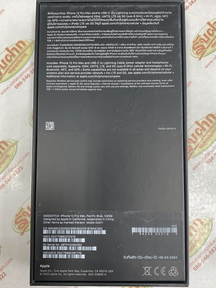 ขายถูก iPhone 12 Pro Max 128GB จอใหญ่6.7นิ้ว สภาพสวย93% สุขภาพแบต85% สีPacific Blue ศูนย์ไทย อุปกรณ์มี ตัวเครื่อง+คู่มือ+กล่อง ไม่ติดiCloud ประกันหมดแล้ว