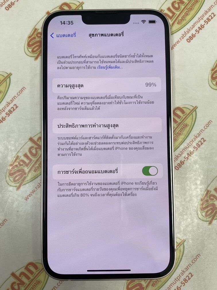 ขายถูก iPhone 13 128GB จอ6.1นิ้ว สุขภาพแบต99% สภาพสวย97% การันตีความใหม่ สีชมพู ศูนย์ไทย อุปกรณ์ไม่มีนะครับ ติดฟิล์มให้หมดแล้วครับ หมด 12 มกราคม 2566
