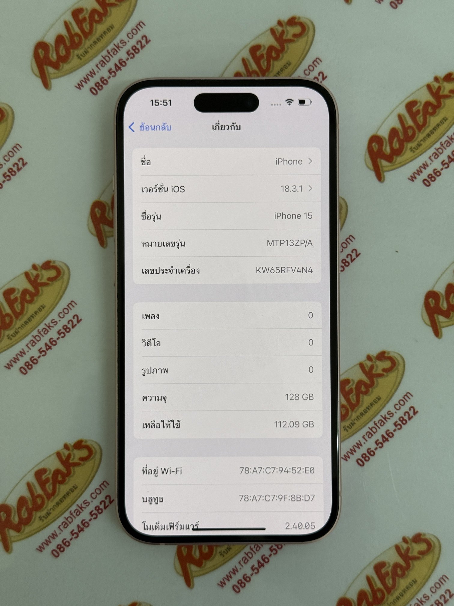 ขายถูก iPhone 15 128GB สภาพสวย90% สุขภาพแบต95% สีชมพู ศูนย์ไทย อุปกรณ์ไม่มีนะครับ มีแต่ตัวเครื่อง ไม่ติดiCloud ประกันหมดแล้ว