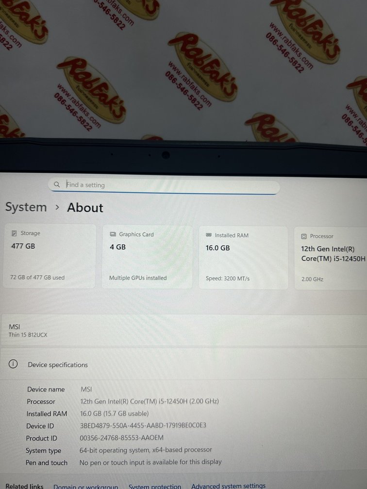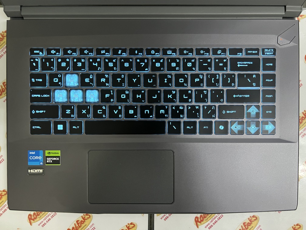 ประกาศขายโน๊ตบุ๊ค สเปคแรงๆ เป็นรุ่น MSI Thin 15 B12UCX-1428TH CPU Intel Core i5-12450H/Nvidia GeForce RTX 2050 4GB/RAM16GB/SSD512GB จอ15.6นิ้ว (1920×1080) Full HD คีย์บอร์ดมีไฟ เครื่องสีGray สภาพสวย90% มีรอยขนแมวนิดหน่อยโดยรวมแล้วสวย อุปกรณ์มี ตัวเครื่อง+สายชาร์จ ประกันหมดแล้วแต่ใช้งานได้100%