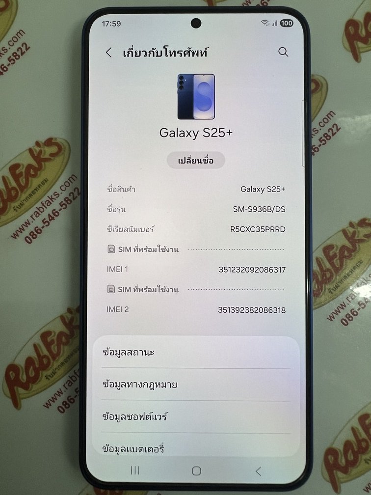 ประกาศขายโทรศัพท์มือถือสมาร์ทโฟนจากค่ายดังฝั่ง Android เป็นรุ่น Samsung Galaxy S25 Plus 5G (SM-S936B/DS) RAM12GB ROM256GB จอใหญ่6.7นิ้ว กล้องหลัง 3 ตัว 50MP + 10MP (Telephoto) + 12MP (Ultrawide) (Triple Camera) กล้องหน้า 12MP เครื่องสีน้ำเงิน สภาพสวย95% การันตีความใหม่ อุปกรณ์ไม่มีนะครับ มีแต่ตัวเครื่อง หน้าจอติดฟิล์มกันรอยให้แล้วครับ รีเซ็ตเครื่องให้ใหม่แล้วพร้อมใช้งานได้ทันที ไม่ติดAccount Gmail ไม่ติดสัญญารายเดือน ประกันหมดแล้วแต่ใช้งานได้100%